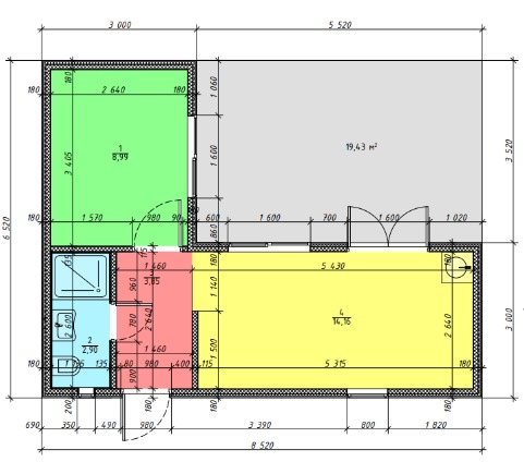 «МИНИ КОМФОРТ» РАЗМЕРЫ ПО ФАСАДУ С УЧЕТОМ ТЕРРАСЫ 6520мм*3000 и